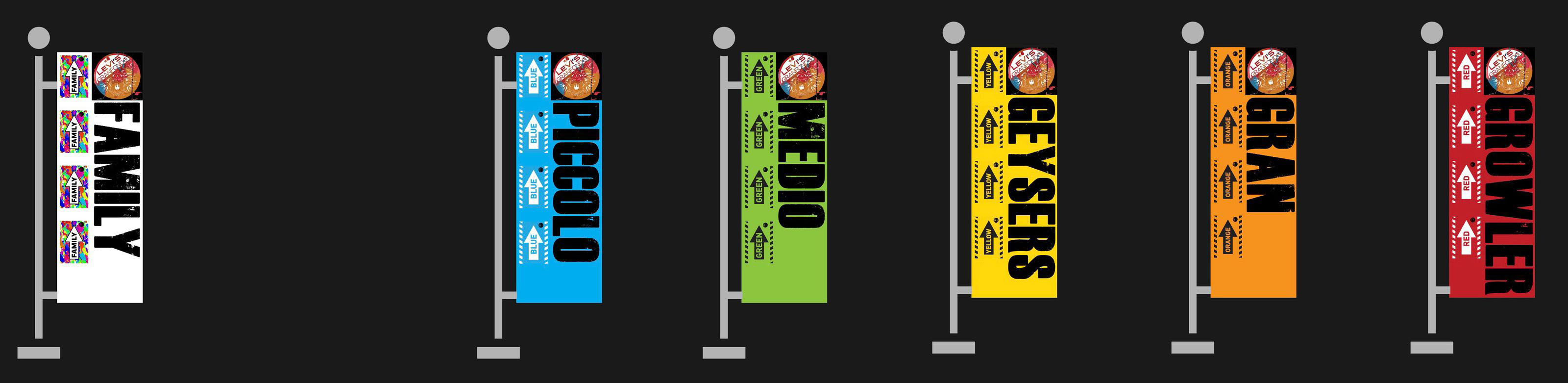 Large banners will be hung along McLelland Drive where the ride starts. These banners indicate where you should start to line up based on the route you're signed up for. They will match the color of the route you are supposed to ride.